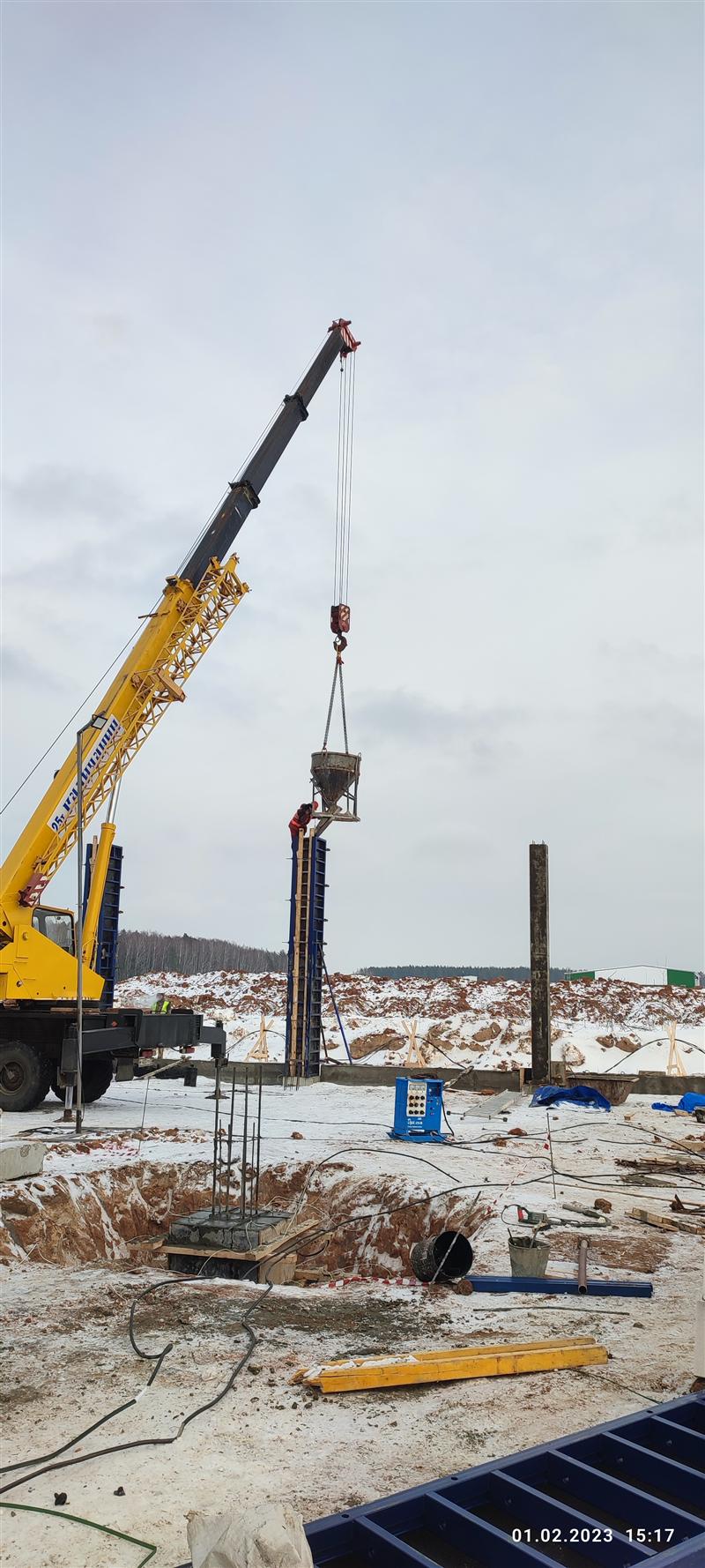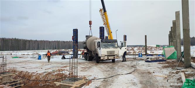 Устройство монолитных фундаментов и колонн с прогревом бетона для производственного здания площадью 3 000 кв.м в районе Доброград г. Ковров Владимирской обл.