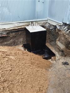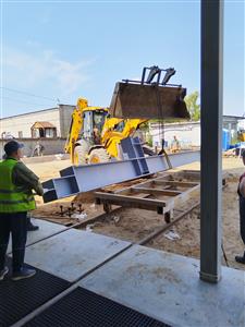 Устройство фундаментов, цоколя, технологического приямка, промышленного пола с встроенными рельсами, монтаж кровли, стен сэндвич панелями.