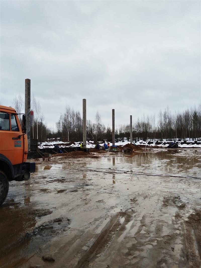 Планировка территории, устройство фундаментов. Монтаж колонн.