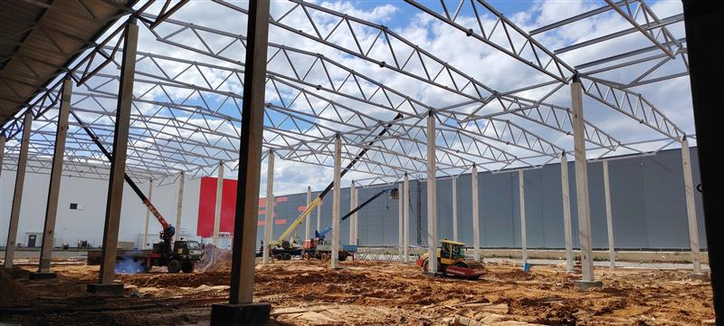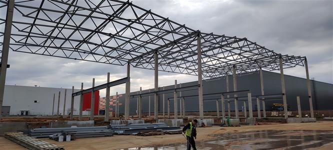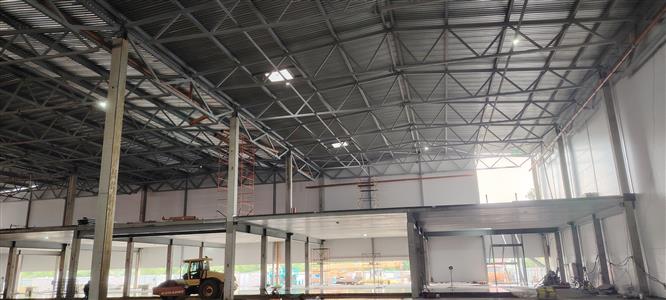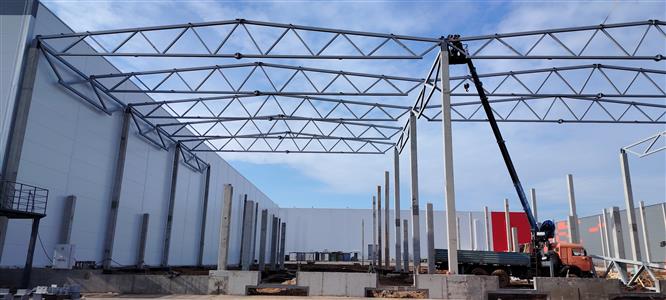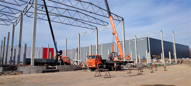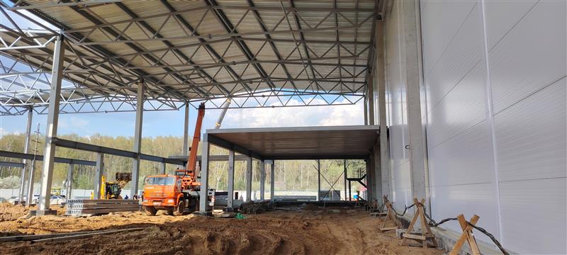 Монтаж колонн, металлоконструкций, балок и плит перекрытий антресоли, кровли, стен сэндвич панелями, доклевеллеров, устройство песчаного основания и промышленных полов, дверных и воротных проемов, эвакуационных лестниц. Устройство внутренних технических и бытовых помещений.