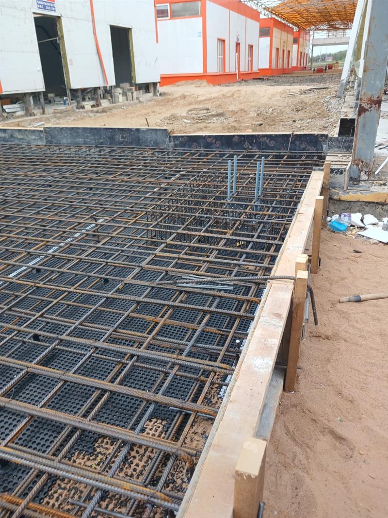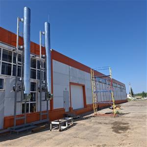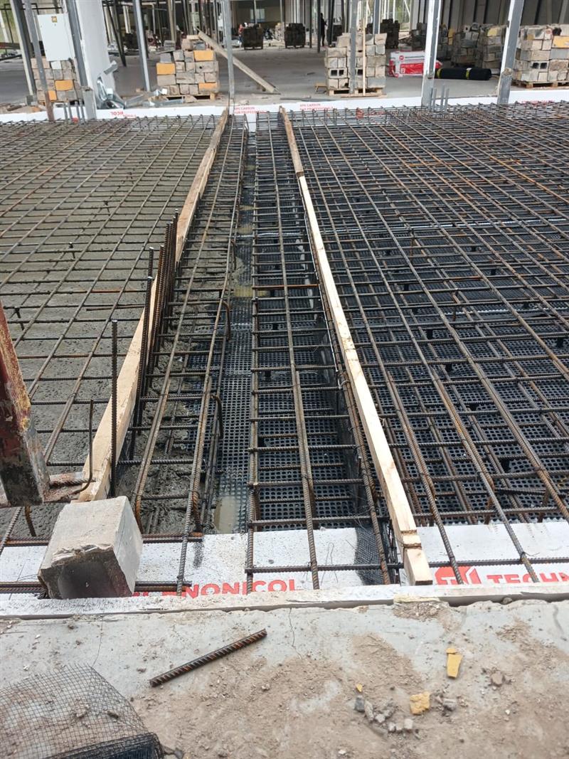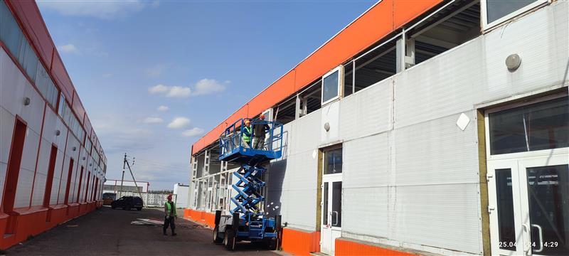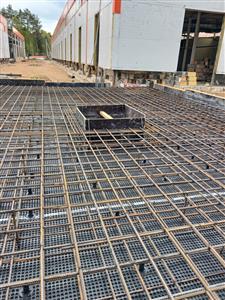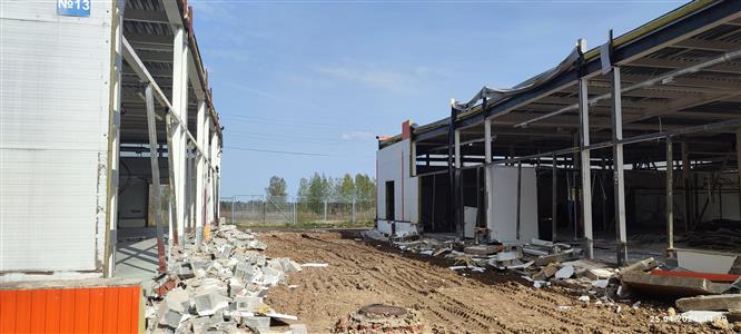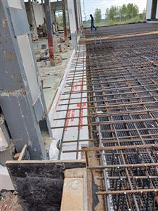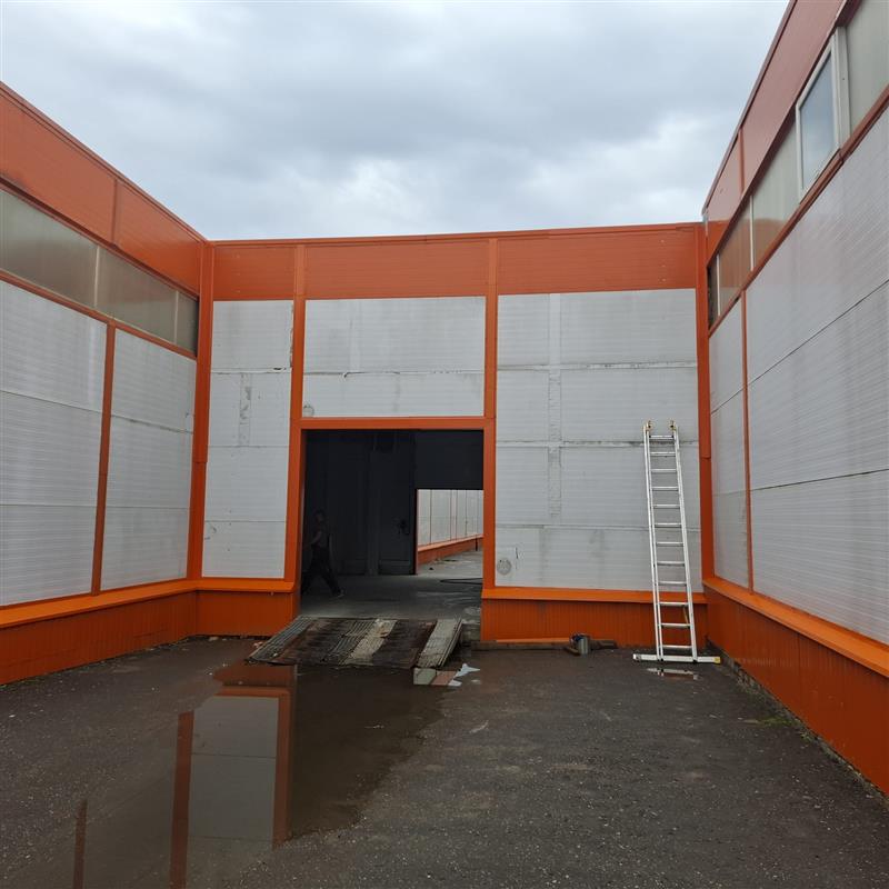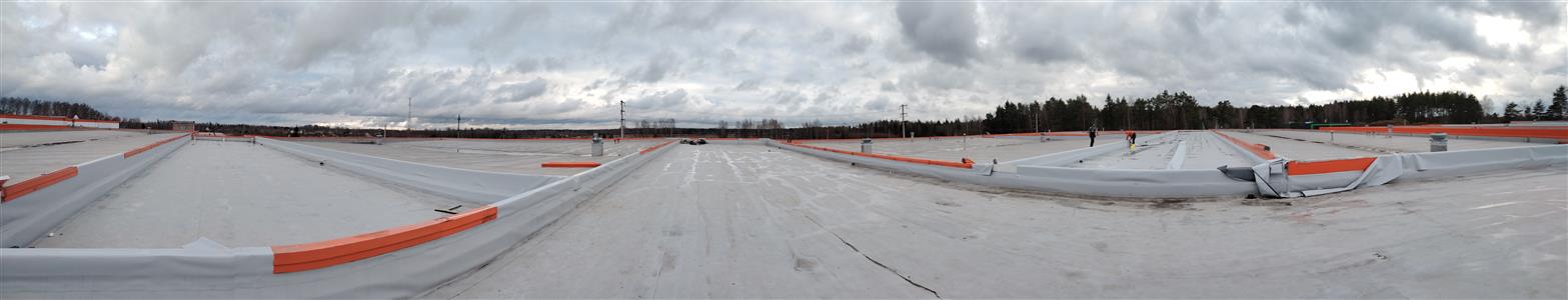 Устройство бетонной фундаментной плиты между существующими корпусами площадью 16 000 м2, монтаж металлического каркаса, кровли, стен сэндвич панелями.