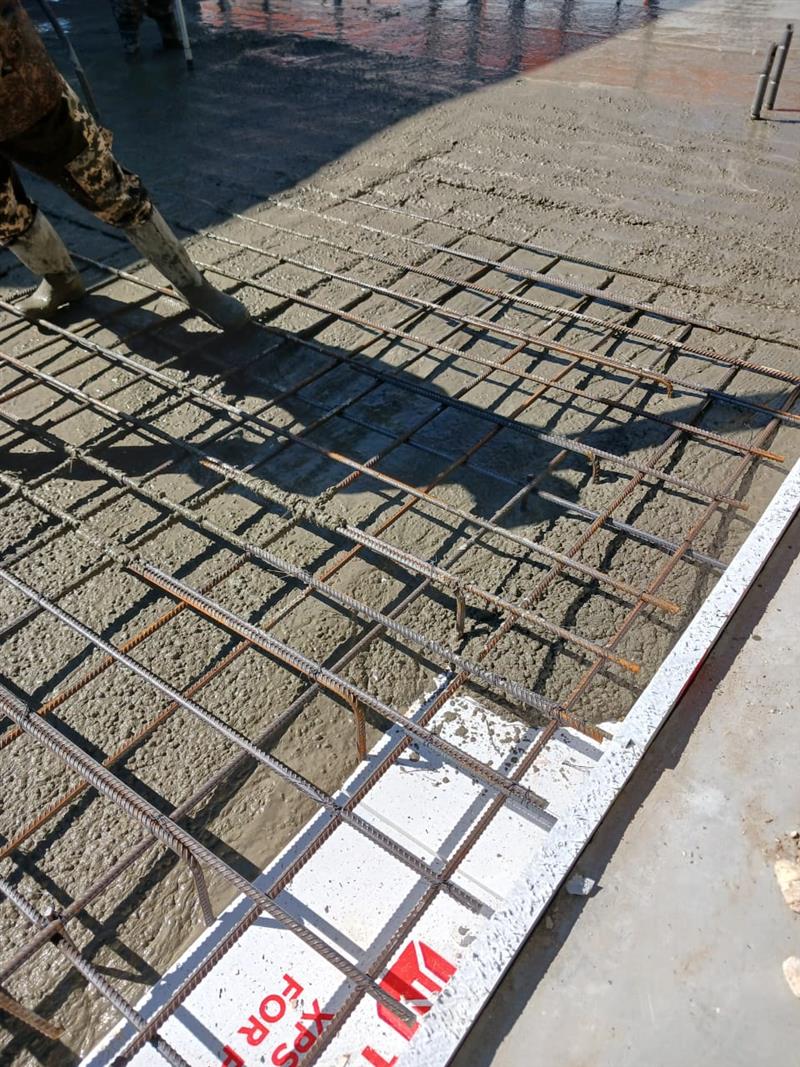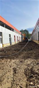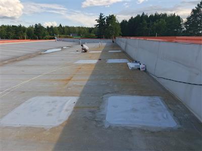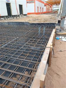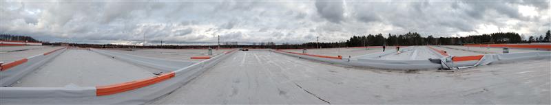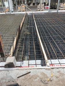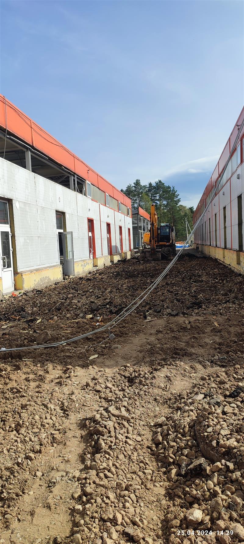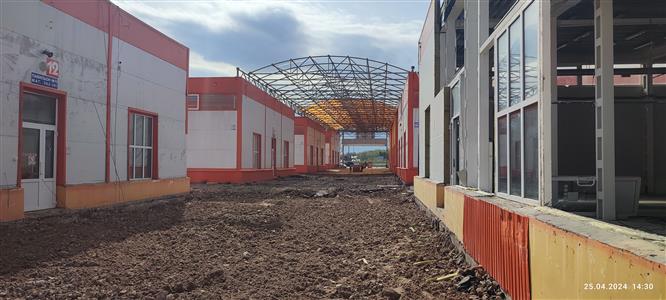 Устройство бетонной фундаментной плиты между существующими корпусами площадью 16 000 м2, монтаж металлического каркаса, кровли, стен сэндвич панелями.